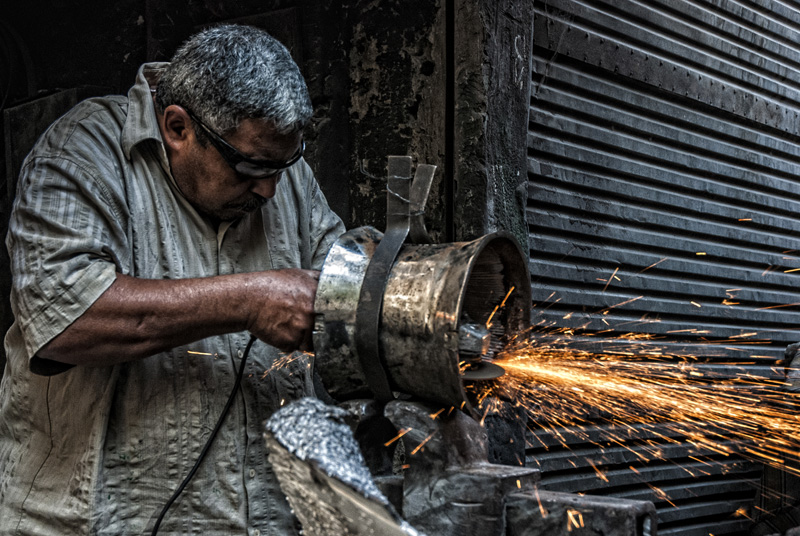 عامل خراطة بورشة حدادة في منطقة مصر القديمة