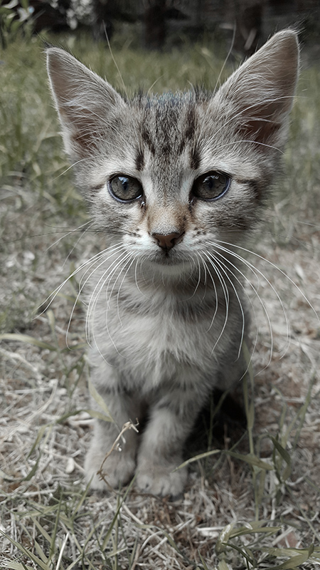 صورة لقطة صغيرة وجميلة مع تركيز نظرها على المصور.
