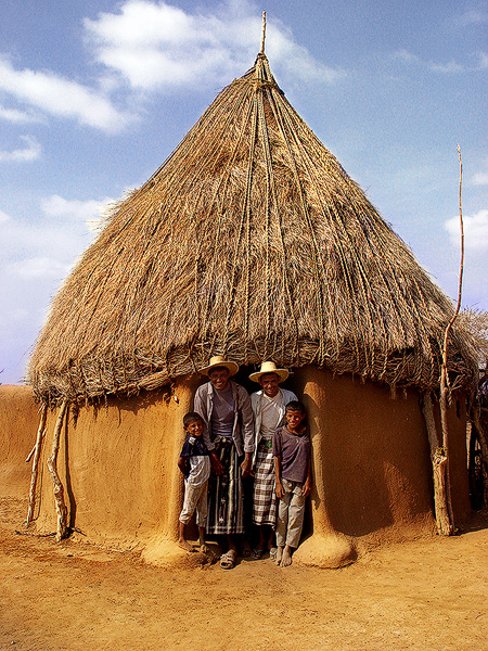 اسرة تهامية في منزلها المكون من الطين والقش في ريف تهامة