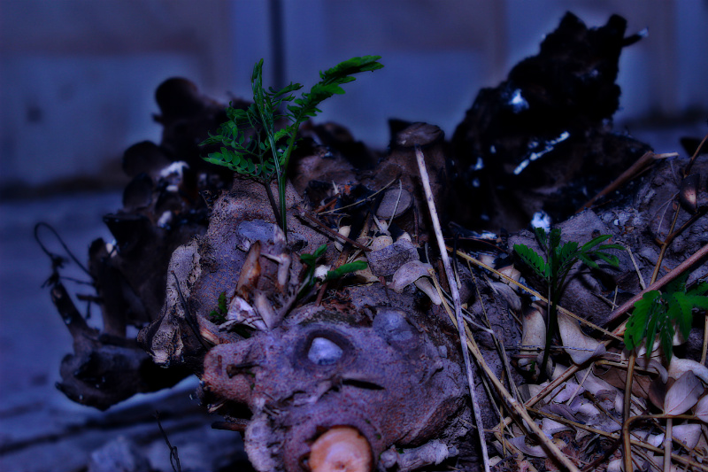 الصورة ملتقطى لشجرة تم قطع جذعها وإحراقه وبعد أسابيع كان على هذه الهيئة!