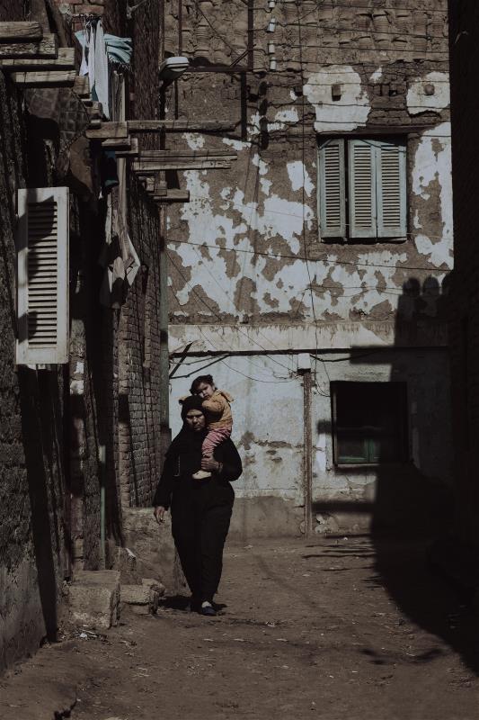 الام فى قرية مازلت تحمل صفات الام فى الماضى من عادات وتقاليد القرية الريفيه وهى تحمل ابنها على كتفه وتمشى فى قرية بين منازل تحمل تراث الماضى القديم بنفس القيمه مع تغيرات بسيطه منازل ذات أصول