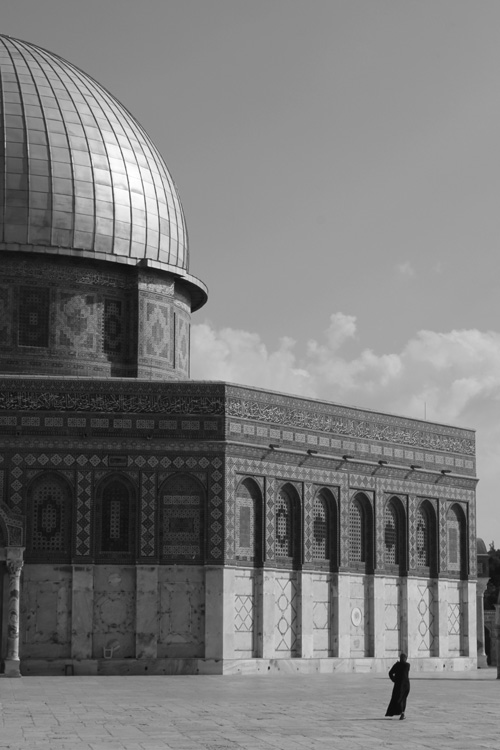 الصورة لقبة الصخرة في المسجد الأقصى وتظهر هنا حجم قبة الصخرة الهائلة نسبة للإنسان