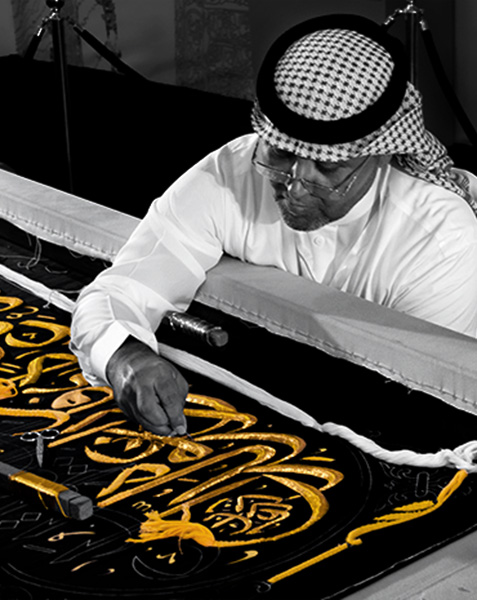 كتابة الايات بخيوط من الذهب على جزء من كساء الكعبة المصنوع من الحرير ثم تجمع جميع الاجزاء لتكون كساء الكعبة المشرفة وتحتاج احدى عشر شهر لتفصيلها بالكامل وتكلف الكسوة 20 مليون ريال
