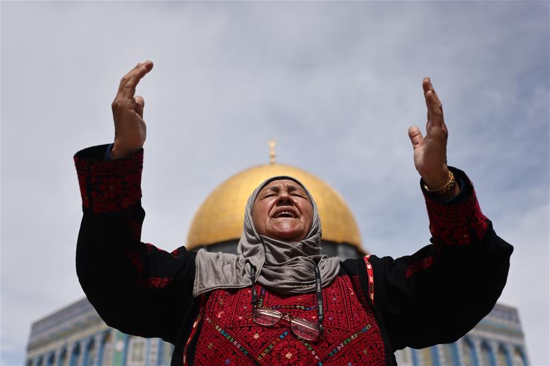 امراه فلسطينيه تؤدي صلاه الجمعه في شهر رمضان المبارك في المسجد الأقصى في القدس